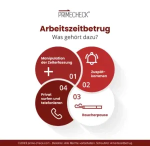 - Arbeitszeitbetrug liegt vor, wenn beispielsweise Arbeitsstunden bewusst verfälscht, Pausenzeiten nicht korrekt erfasst oder nicht tatsächlich geleistete Überstunden angegeben werden.